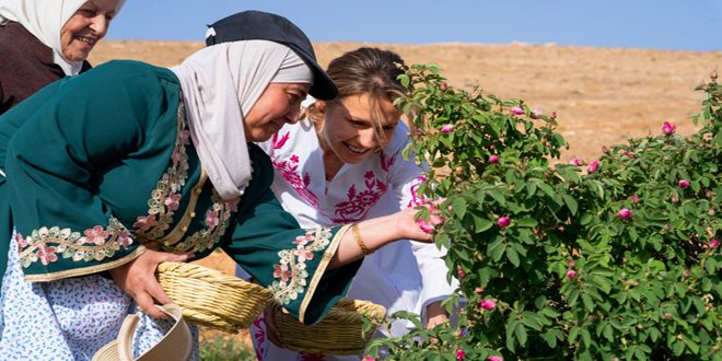 ولأن إحياء التراث بكل أشكاله هو استمرار لنسغ الحياة، والحفاظ عليه هو تشبث بالهوية، كانت ولا تزال السيدة الأولى أسماء الأسد ترعى وتدعم من يتمسك به ويورثه لأبنائه، حيث شاركت أهالي المراح اليوم قطاف وردتهم الشامية، جوهرة حياتهم وأيقونة استمرار رزقهم، فطقوس القطاف كل عام هي شاهد على الأهمية الاجتماعية والثقافية التي لا تخبو للوردة الشامية بالنسبة لمن يصون هذا التراث ويحميه.